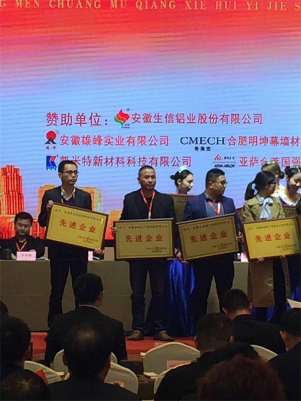 會議上宣布了安徽門窗幕墻協(xié)會新增會員單位名單和晉級單位名單,并為新增會員單位和晉級單位授牌及頒發(fā)證書。我公司榮獲“先進企業(yè)”表彰。