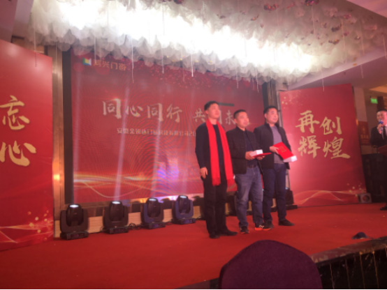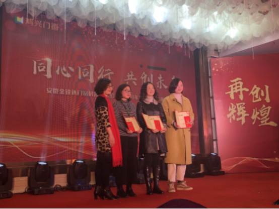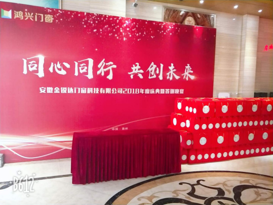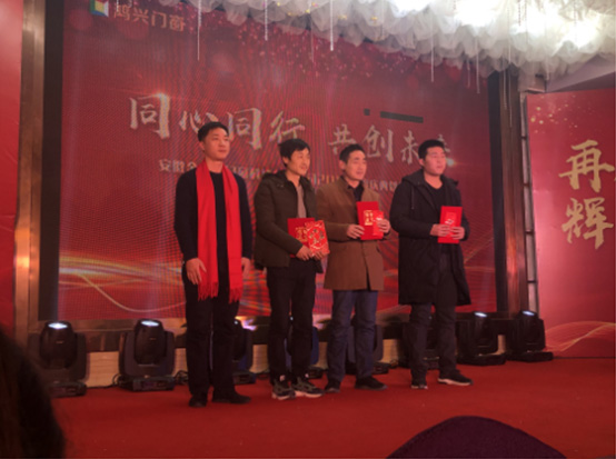 2019年1月27日下午,安徽金銳達門窗科技有限公司2019年超額分紅股權(quán)激勵發(fā)布會暨2018年度答謝晚會在憶江南風(fēng)尚餐廳召開。此次年會有幸邀請到六安中財管道科技有限公司、安徽環(huán)宇鋁業(yè)有限公司、山東華建鋁業(yè)集團有限公司、安徽榮春玻璃科技有限公司、安徽華辰中空玻璃有限公司、定遠縣金海鋼化玻璃有限公司、滁州睿發(fā)玻璃制品有限公司、廣東堅朗五金制品股份有限公司、浙江興三星五金有限公司、春光五金有限公司、來安縣圣亞新型材料有限公司、江蘇華昌鋁業(yè)有限公司、鳳臺軒嘉建材銷售有限公司、江蘇潤泰膠業(yè)有限公司、浙江博奧鋁業(yè)有限公司、連云港華才建材貿(mào)易有限公司、滁州宏福鋁塑配件有限公司、句容市愛尚裝飾工程有限公司等合作伙伴與大家歡聚一堂。
