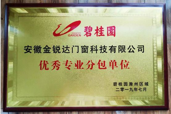 熱烈祝賀我司榮獲碧桂園滁州區(qū)域“優(yōu)秀專業(yè)分包單位”