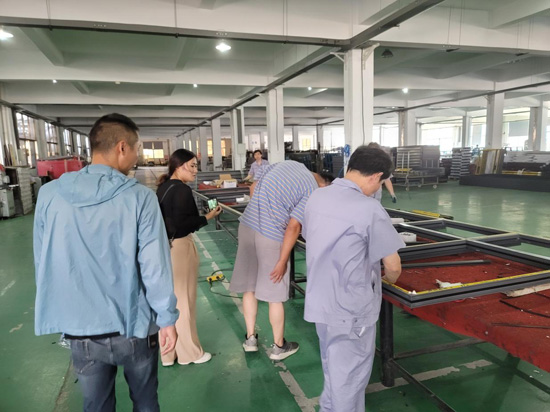 深入生產(chǎn)車間,考察團(tuán)一行首先參觀了塑鋼和鋁合金生產(chǎn)線,徐總在參觀過程中重點介紹了我司門窗生產(chǎn)整體的加工能力和服務(wù)范圍,并就一些特殊的加工工藝進(jìn)行詳細(xì)講解。